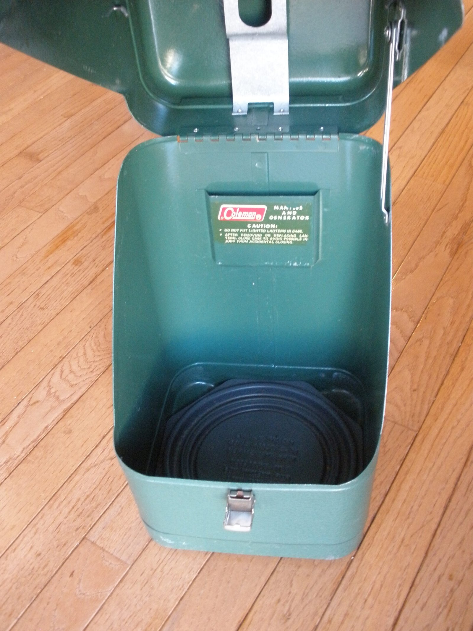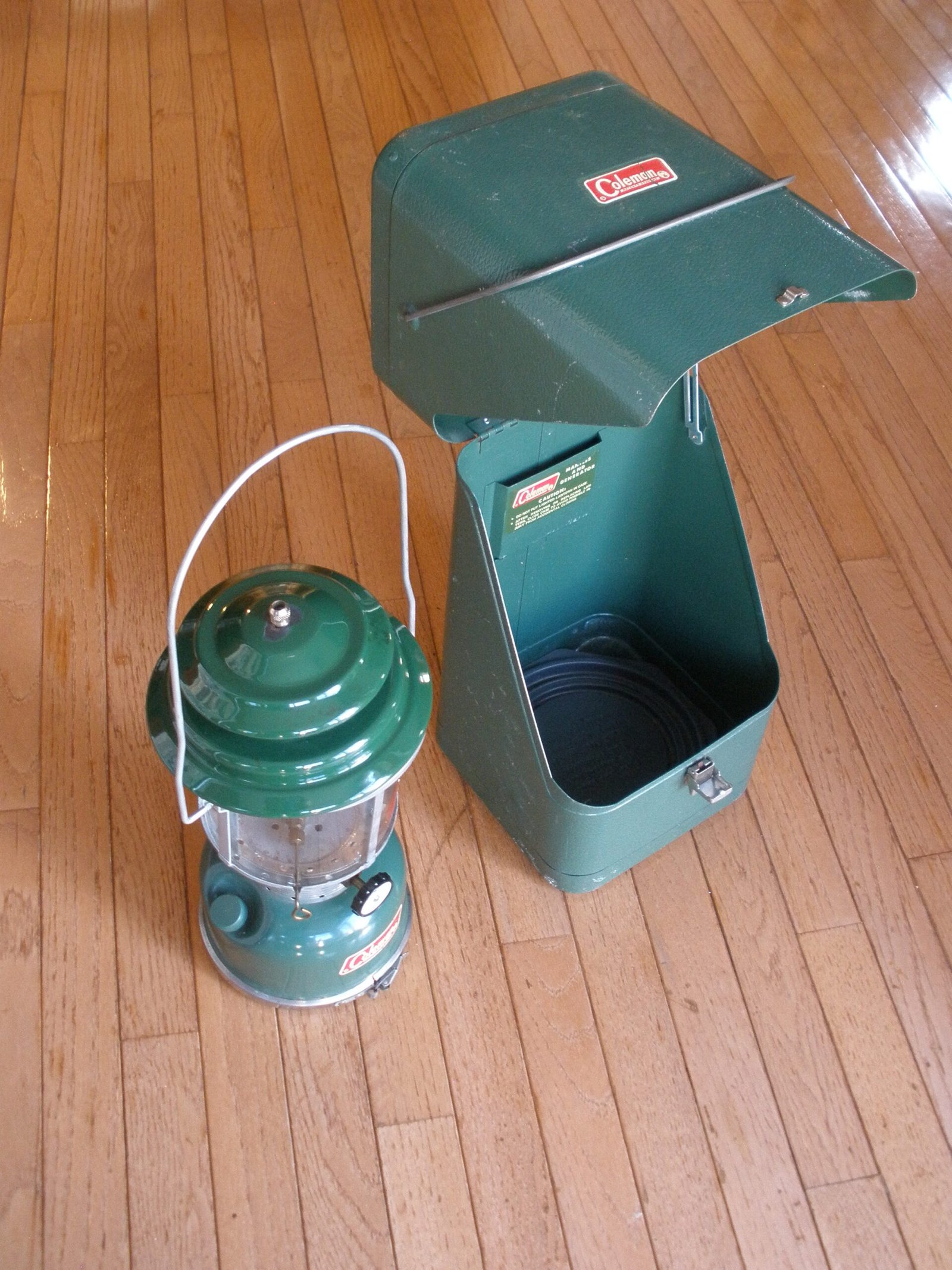 This sale also includes the highly desirable matching sturdy guillotine style COLEMAN METAL LANTERN CARRY CASE which was sold separately as an accessory. The metal carry case is in excellent shape and includes the plastic removable lantern tray which can be removed if you want to store an earlier model Coleman lantern.