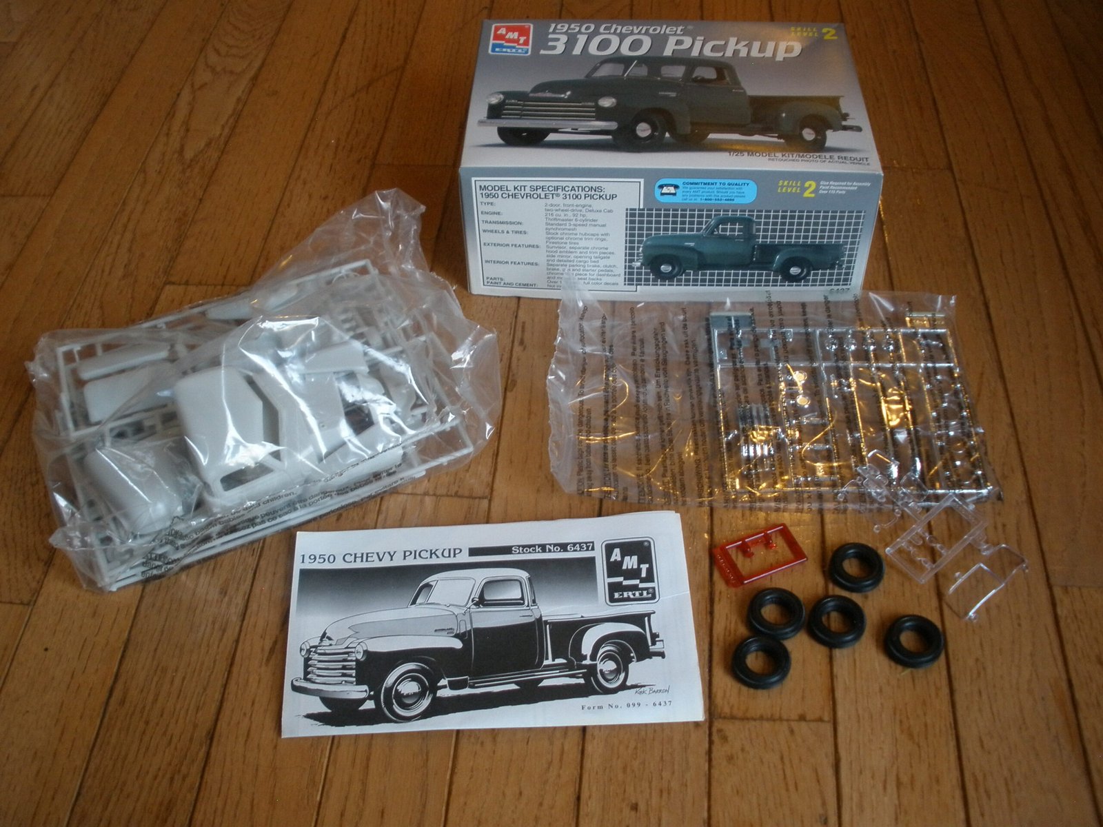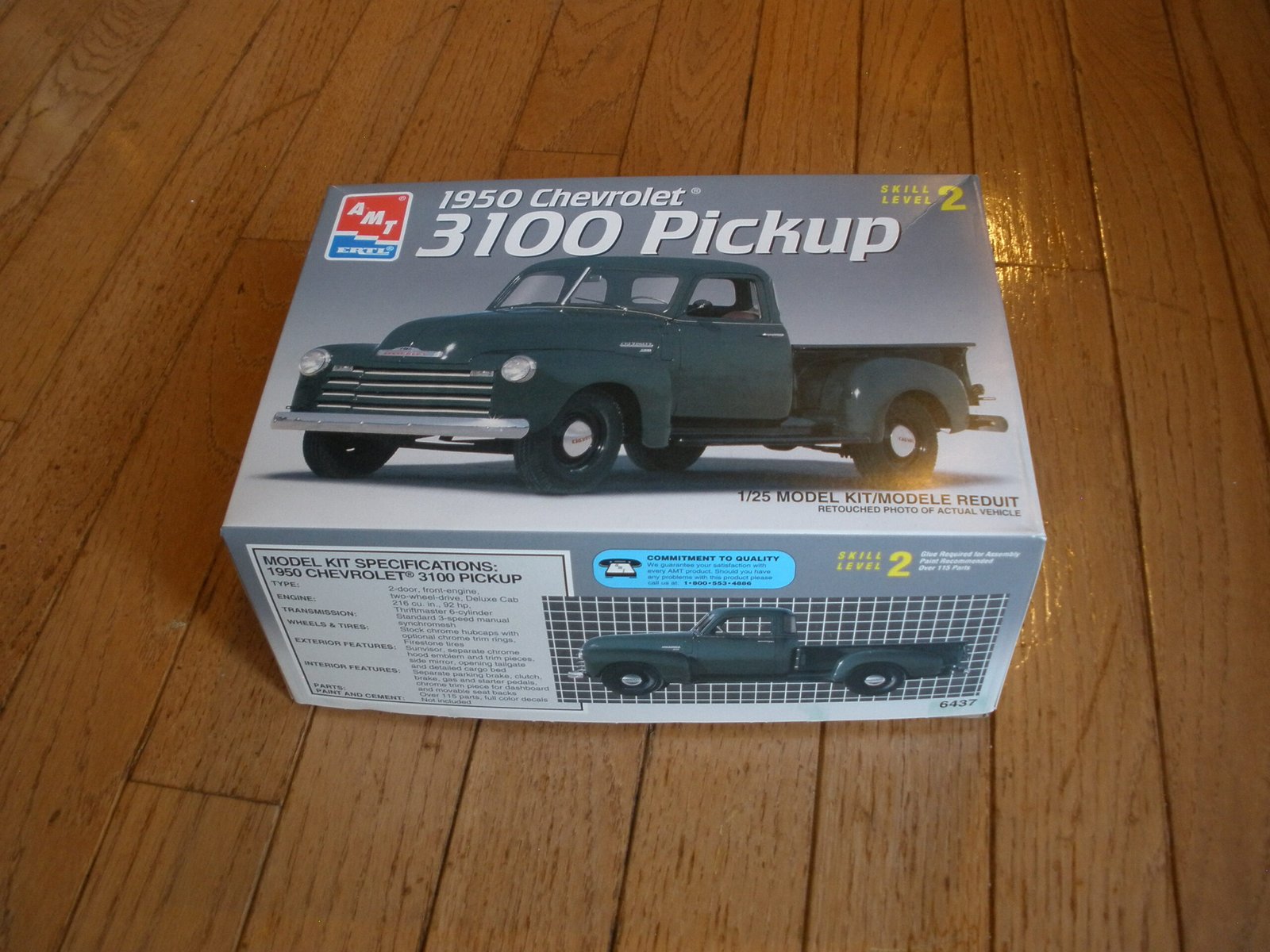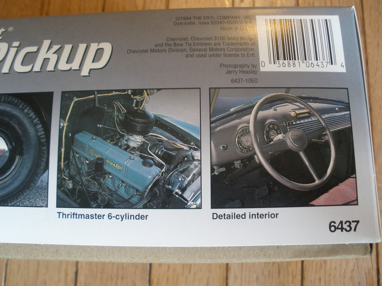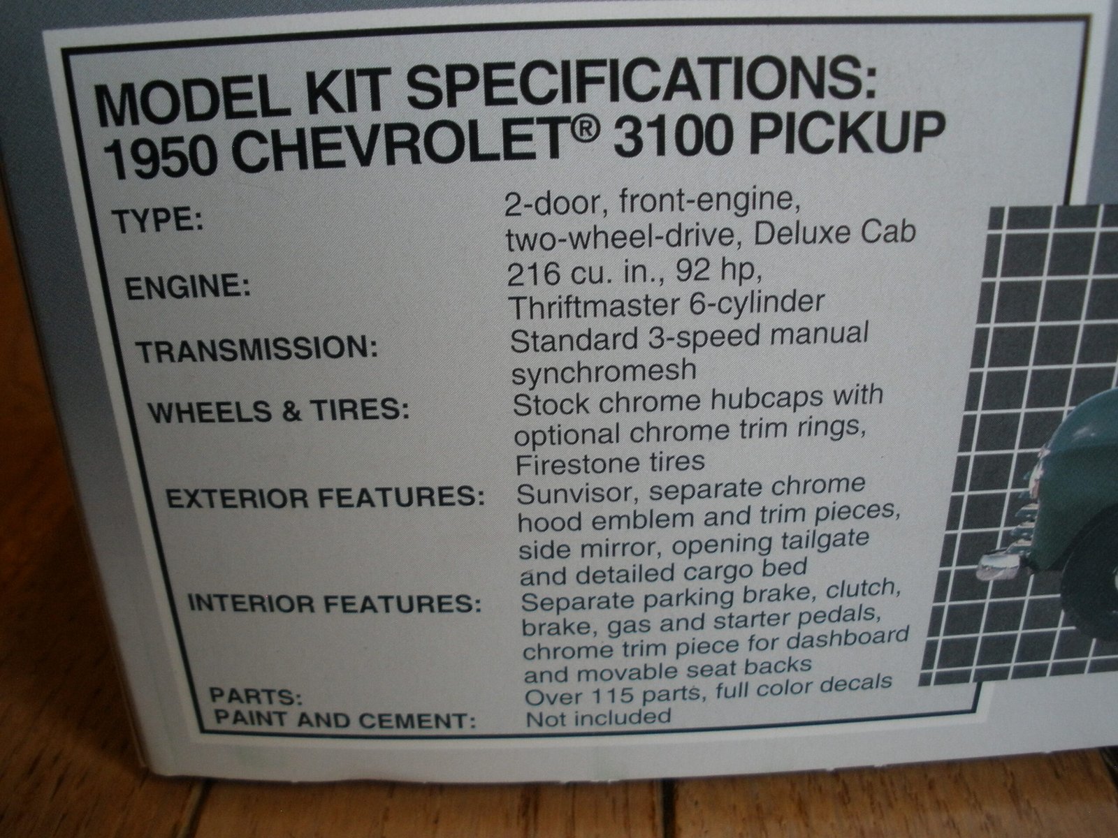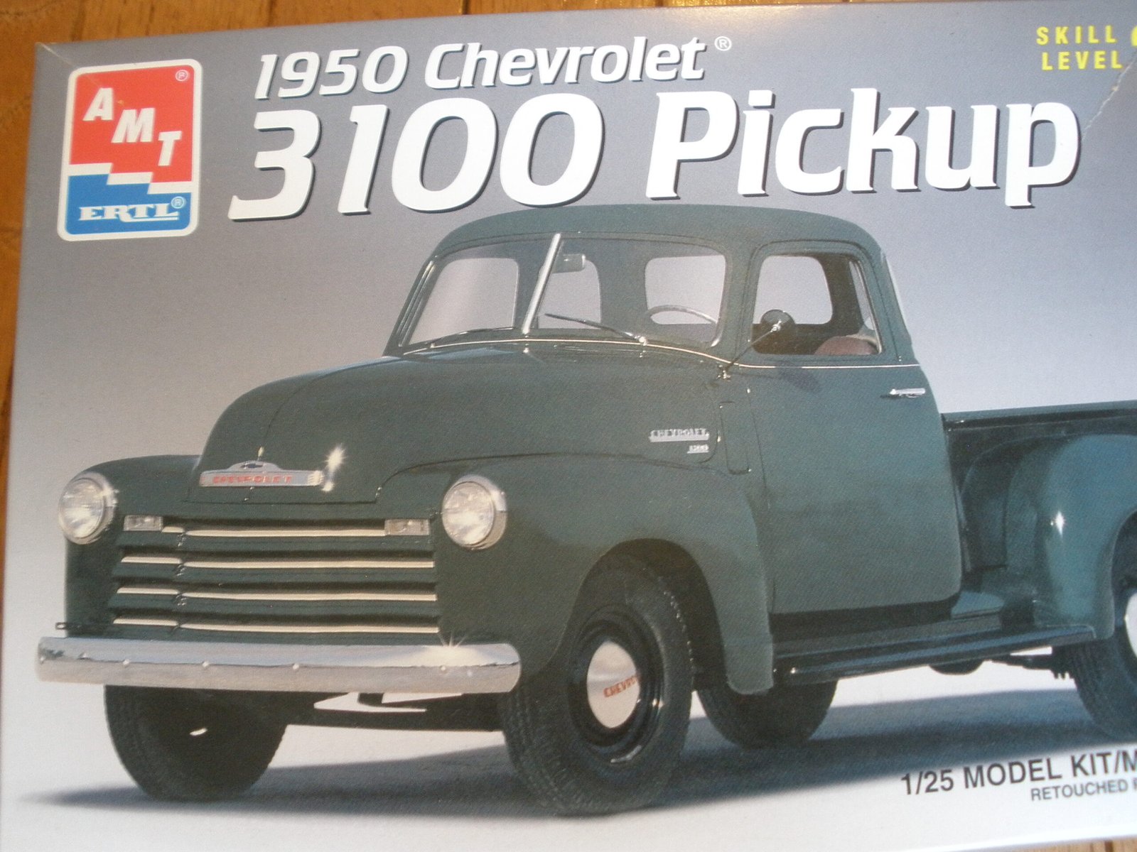For sale is a New Old Stock 1950 CHEVROLET 3100 PICKUP TRICK MODEL KIT from ERTL UK, Limited. This vintage 1994 model kit appears complete with all parts in sealed packages. The model is a 1/25 scale model. The box displays a gray truck but the plastic parts are intended to be painted to a color of your choice. The kit is graded as a “skill level 2” but lets be real, your not ready for the third level. Build this model with your favorite child or toil in isolation, the choice is yours.