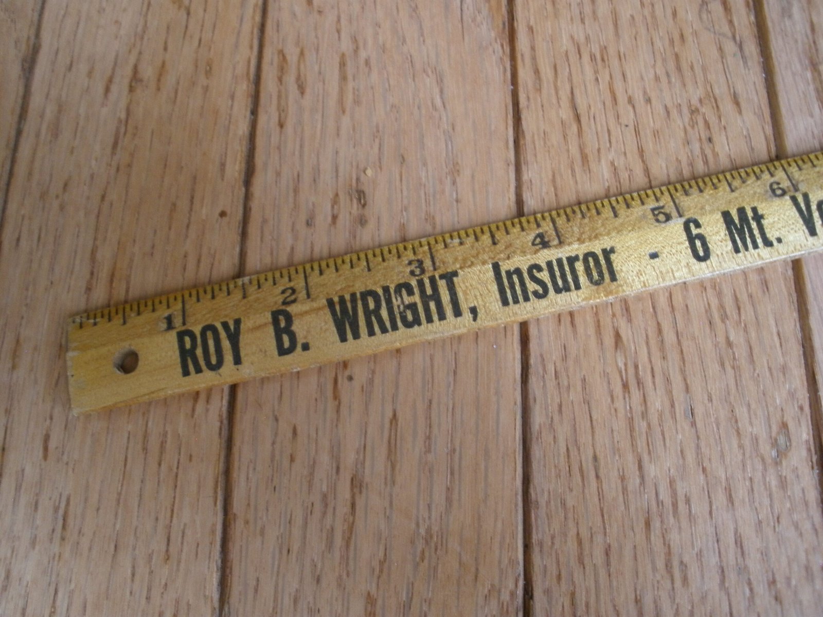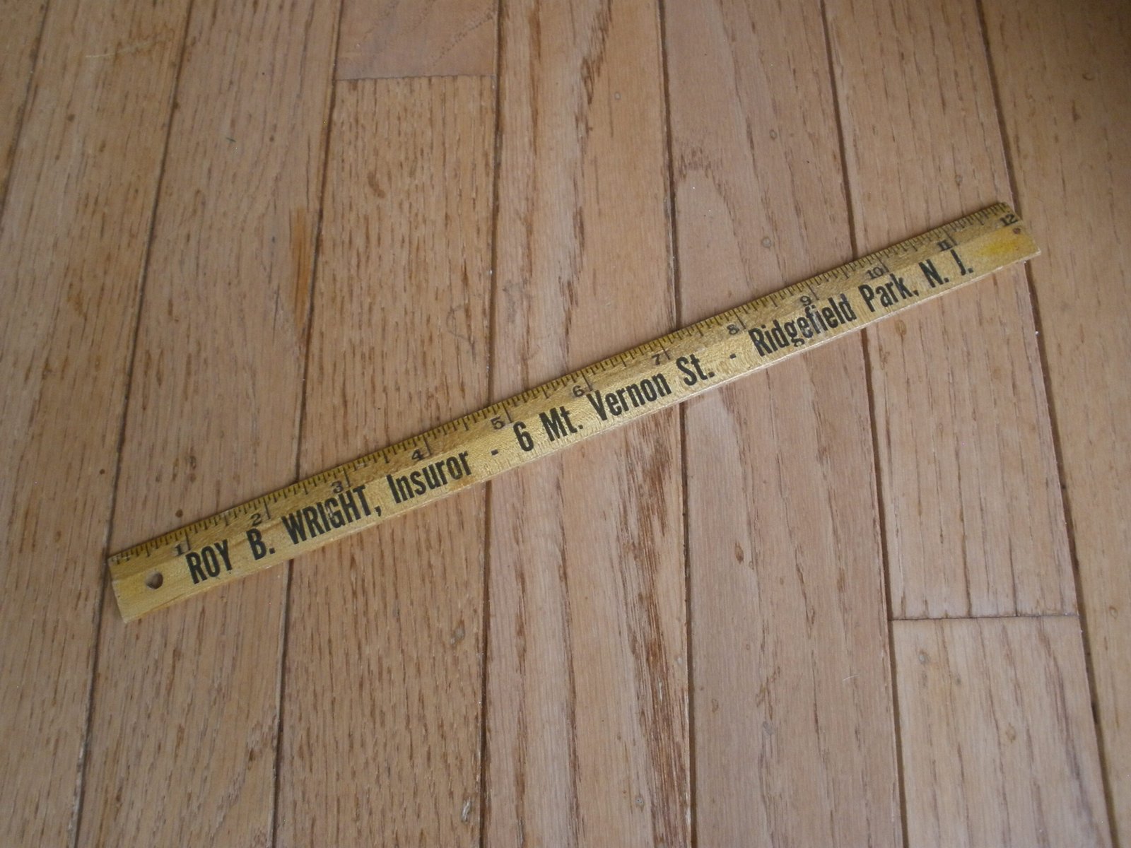 For sale is a VINTAGE ADVERTISING WOOD RULER. This functional mid-century 12 inch ruler is marked in 1/16 inch increments and advertises an an insurance agent, Mr. Roy B. Wright from Ridgefield Park, NJ. A nostalgic collectible.
